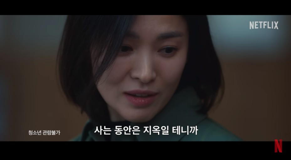 더글로리는 고등학교 시절 5명의 친구들에게 학교폭력을 당하는 주인공 문동은(송혜교)이 씻을 수 없는 상처를 안고 이후 초등학교 교사가 되어 치밀하게 준비하고 이들에게 복수하는 이야기를 그린작품으로 김은숙작가의 첫 복수극이자 청소년 관람불가의 등급을 받은 드라마입니다.