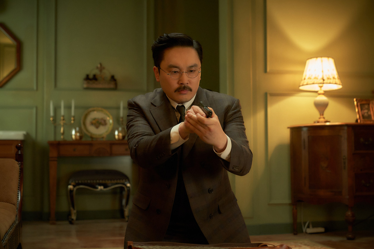 영화 전반부는 용의자들 간의 의심과 단서 찾기로 첩보극의 긴장감을 더하고 있습니다. 앞서 말씀드렸듯이 초반에 유령이 누군지 관객들은 알고 있기 때문에 카이토가 용의자들 사이에 유령을 어떻게 색출할지 그 과정이 나올 줄 알았으나 추리 과정에 크게 중점은 두진 않았습니다. 조선 총독부 수장을 죽이려는 첩보극으로 강렬한 액션을 보여줍니다.